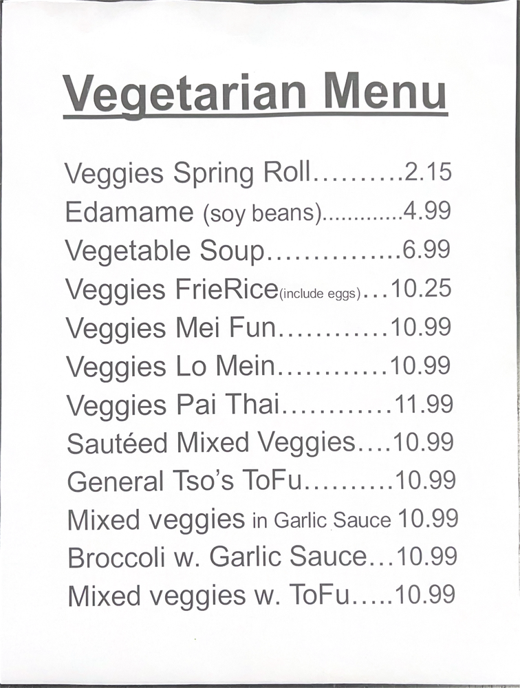 Hong Kong Asian Cuisine Menu
